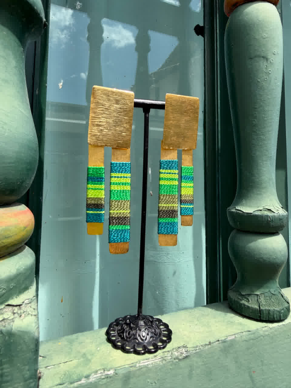 Elegancia de lo hecho a mano, Arete artesanal en hilo seda, elaborada con herrajes en bronce de alta calidad y un doble baño de oro de 24k. Cada pieza es una creación única, hecha en Colombia, pensada para mujeres que valoran la exclusividad, el diseño artesanal y la moda consciente.