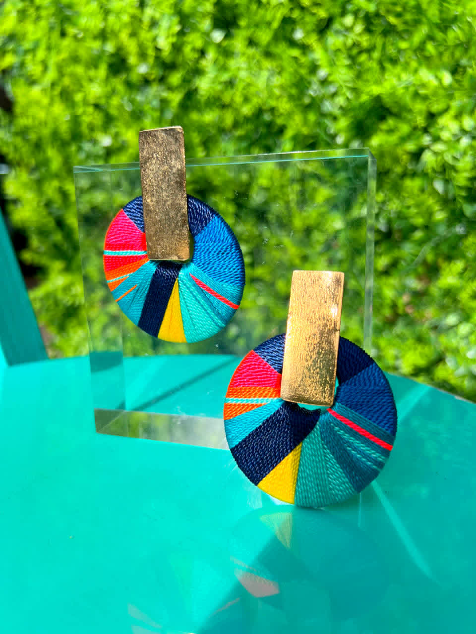 Sientete unica con nuestros aretes artesanales que haran verte diferente, Aretes en hilo seda, elaborada con herrajes en bronce de alta calidad y un doble baño de oro de 24k. Cada pieza es una creación única, hecha en Colombia, pensada para mujeres que valoran la exclusividad, el diseño artesanal y la moda consciente.