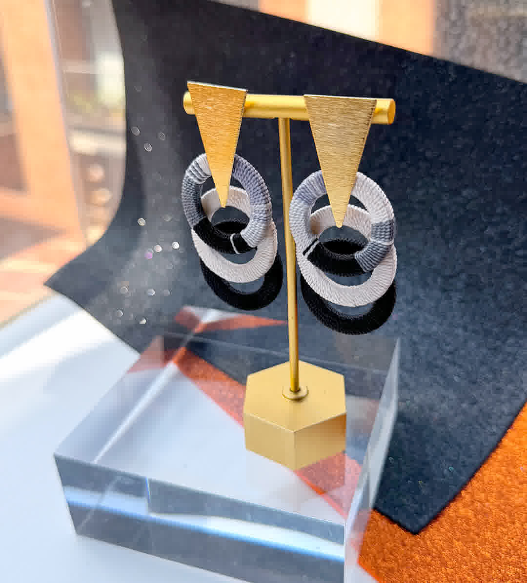 Sientete unica con nuestros aretes artesanales que haran verte diferente, Arete artesanal en hilo seda, elaborada con herrajes en bronce de alta calidad y un doble baño de oro de 24k. Cada pieza es una creación única, hecha en Colombia, pensada para mujeres que valoran la exclusividad, el diseño artesanal y la moda consciente.