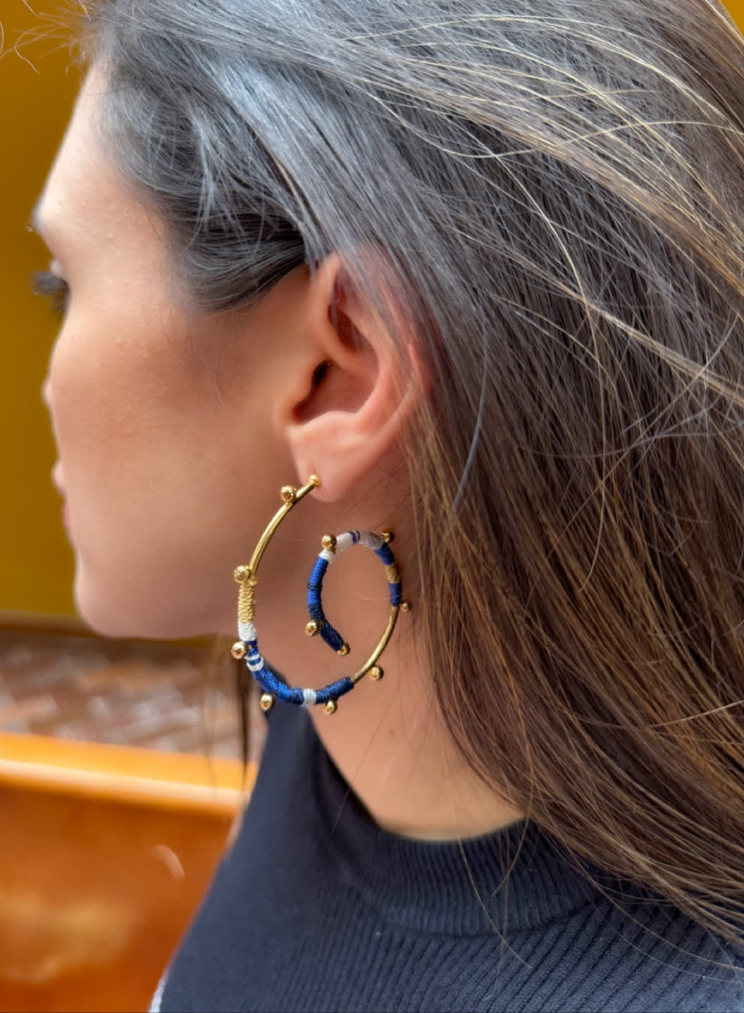 Sientete unica con nuestros aretes artesanales que haran verte diferente, Arete en hilo seda, elaborada con herrajes en bronce de alta calidad y un doble baño de oro de 24k. Cada pieza es una creación única, hecha en Colombia, pensada para mujeres que valoran la exclusividad, el diseño artesanal y la moda consciente.