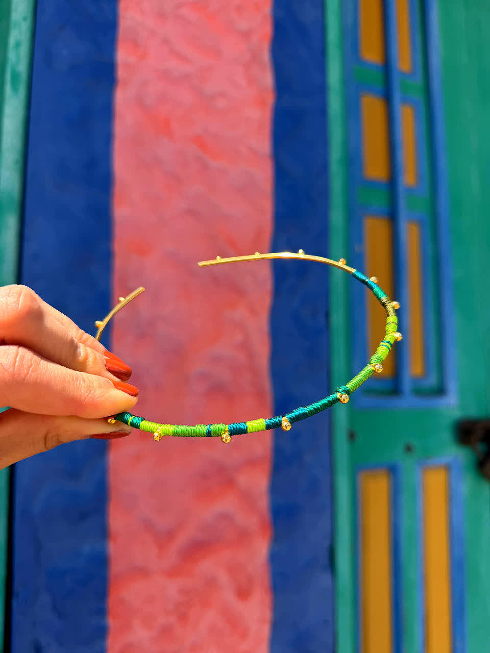 - Material: Hilo seda y bronce con baño de oro 24k.