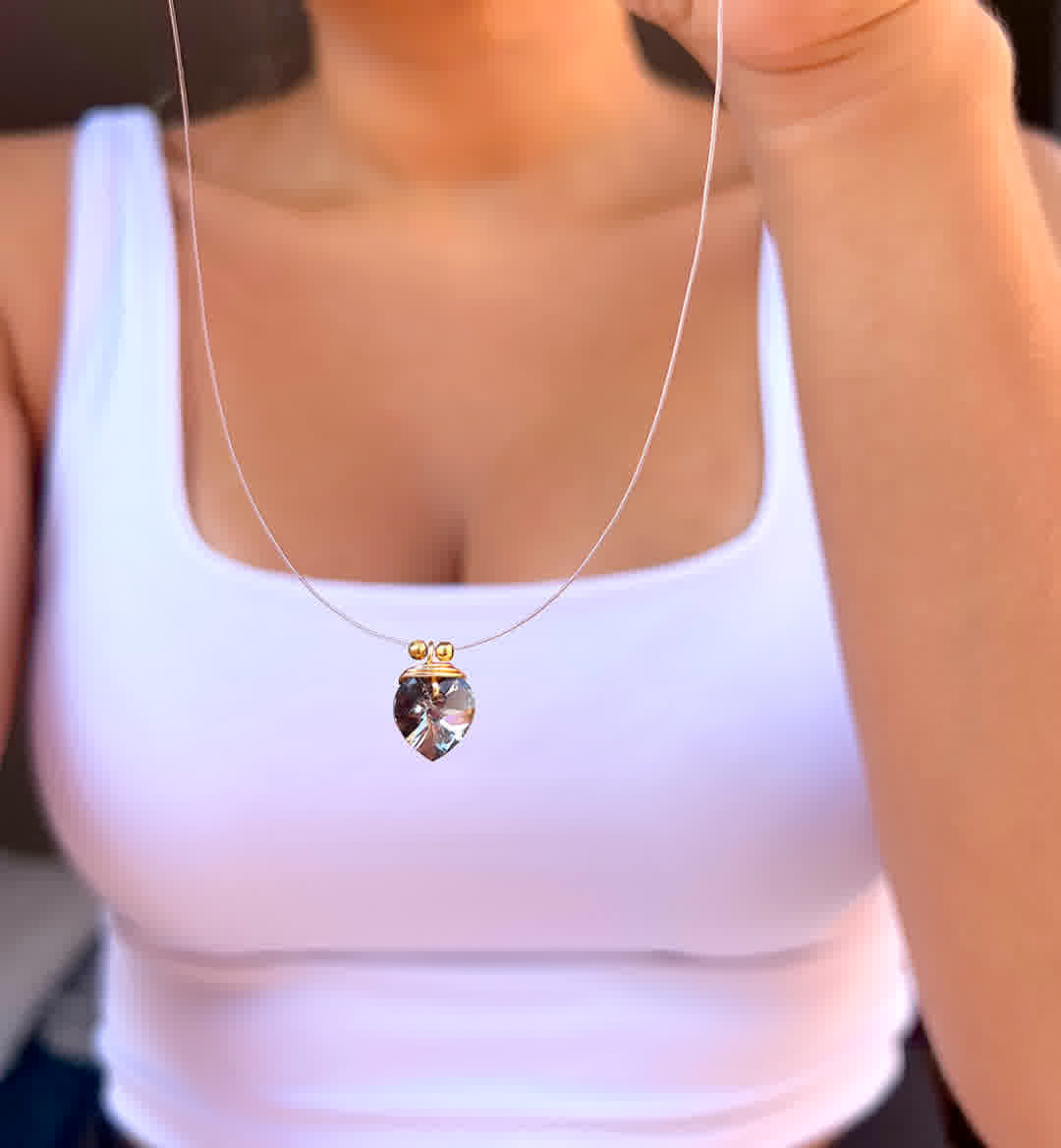 Elegancia de lo hecho a mano,Collar en base nylon , elaborada con herrajes baño de oro de 24k y Cristales genuinos. Cada pieza es una creación única, hecha en Colombia, pensada para mujeres que valoran la exclusividad, el diseño artesanal y la moda consciente.