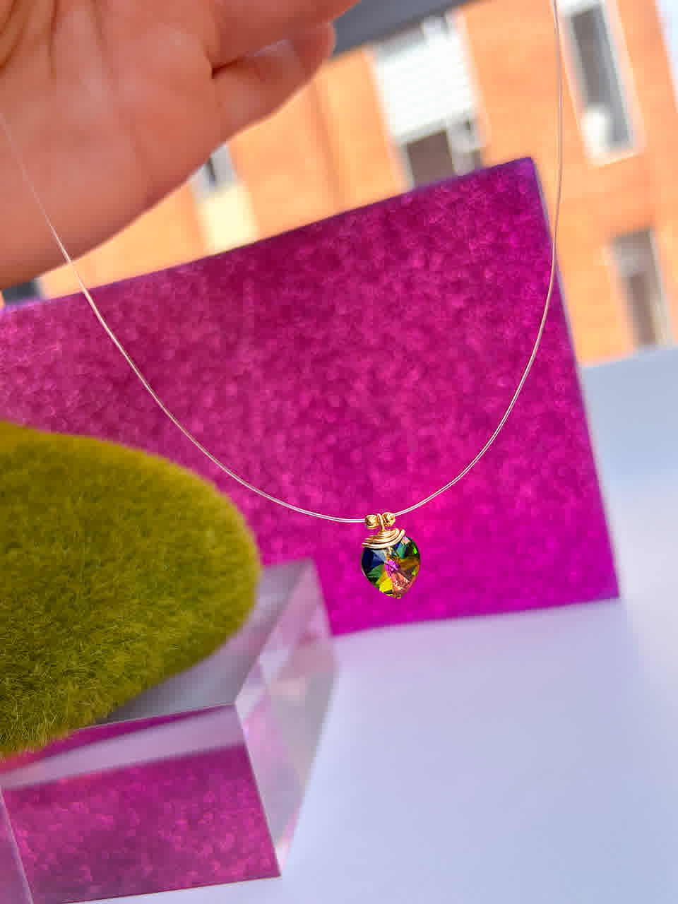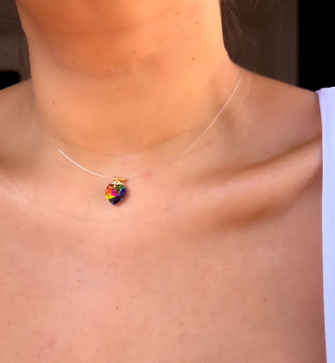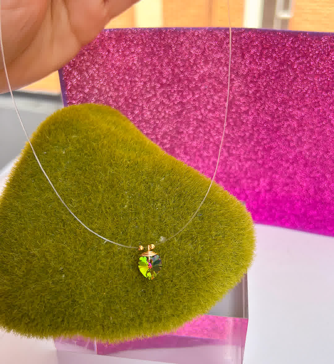 Collar Marroqui Invisibles Corazon Verde tornasolado