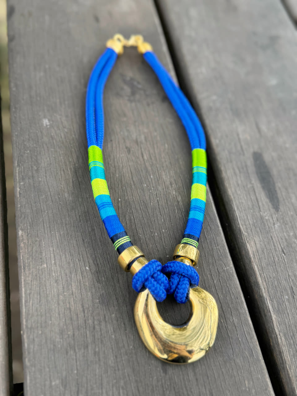 Sientete unica con nuestros collares artesanales que haran verte diferente,, collar artesanal en hilo seda, elaborada con herrajes en bronce de alta calidad y un doble baño de oro de 24k. Cada pieza es una creación única, hecha en Colombia, pensada para mujeres que valoran la exclusividad, el diseño artesanal y la moda consciente.