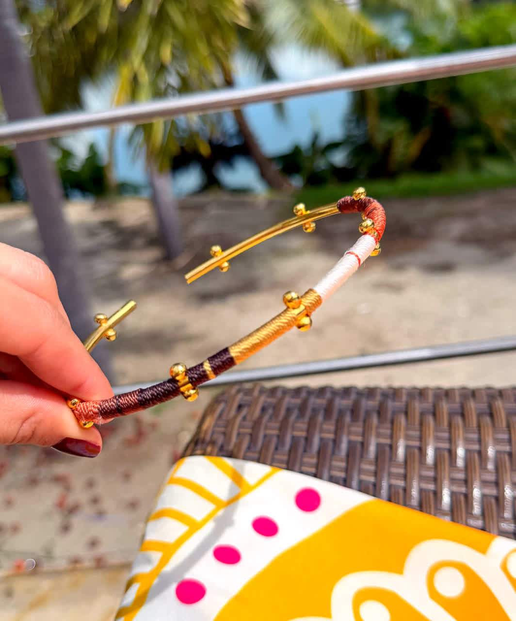 - Material: Hilo seda y bronce con baño de oro 24k.