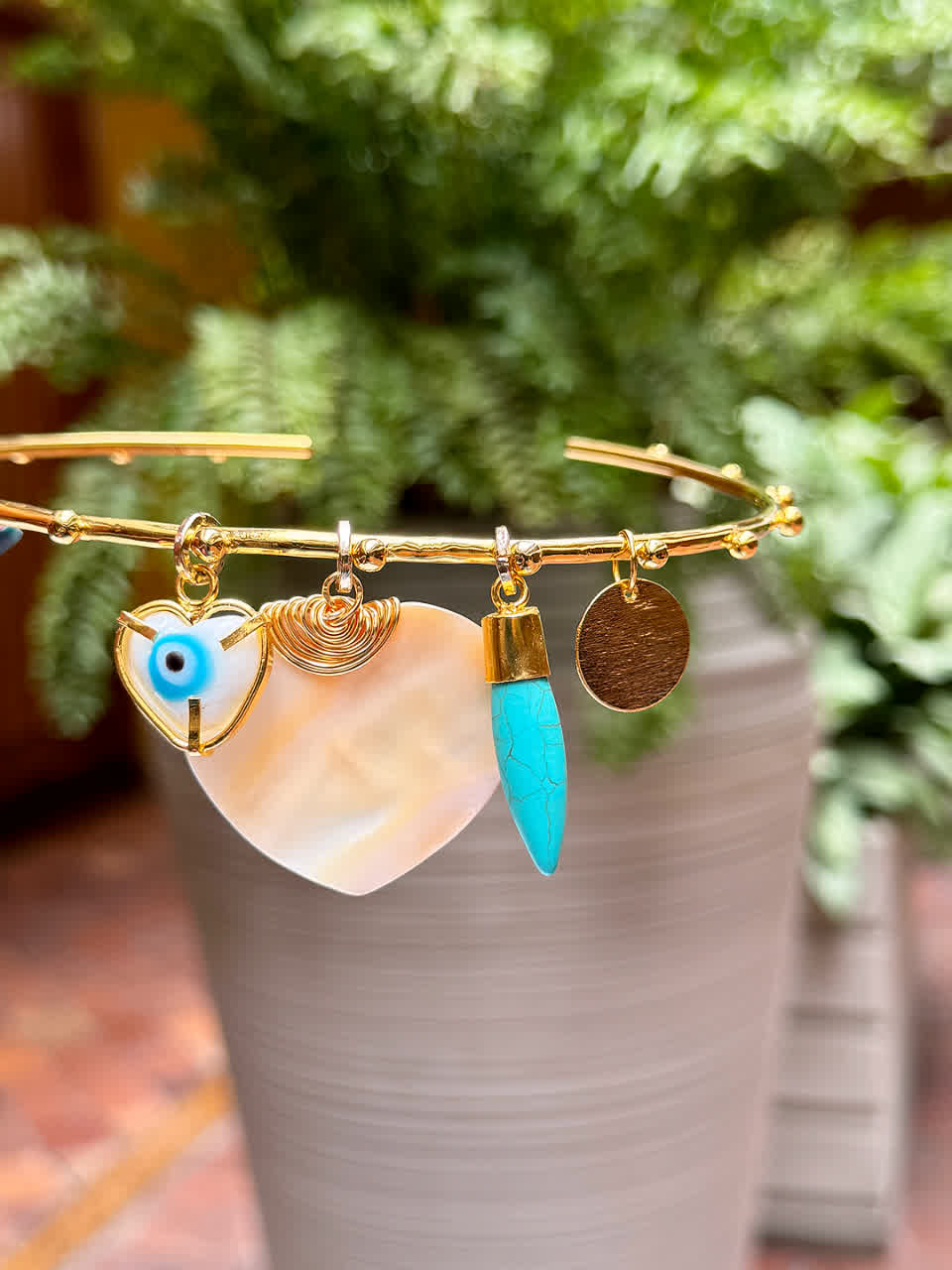 - Material: Hilo seda, bronce con baño de oro 24k y piedras semipreciosas.