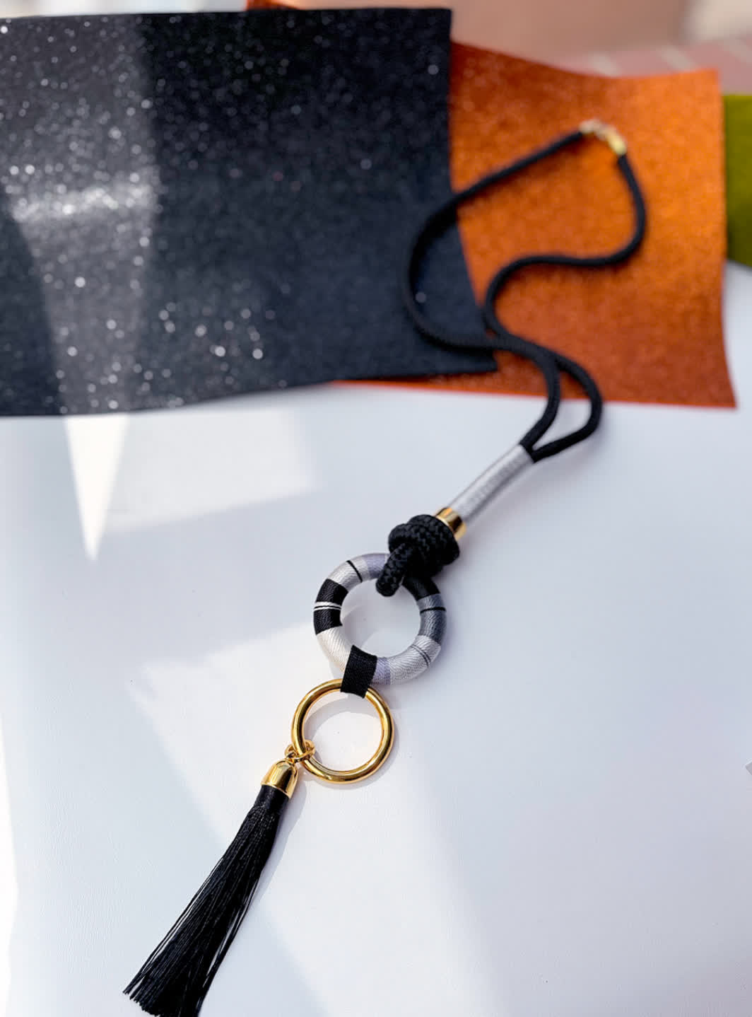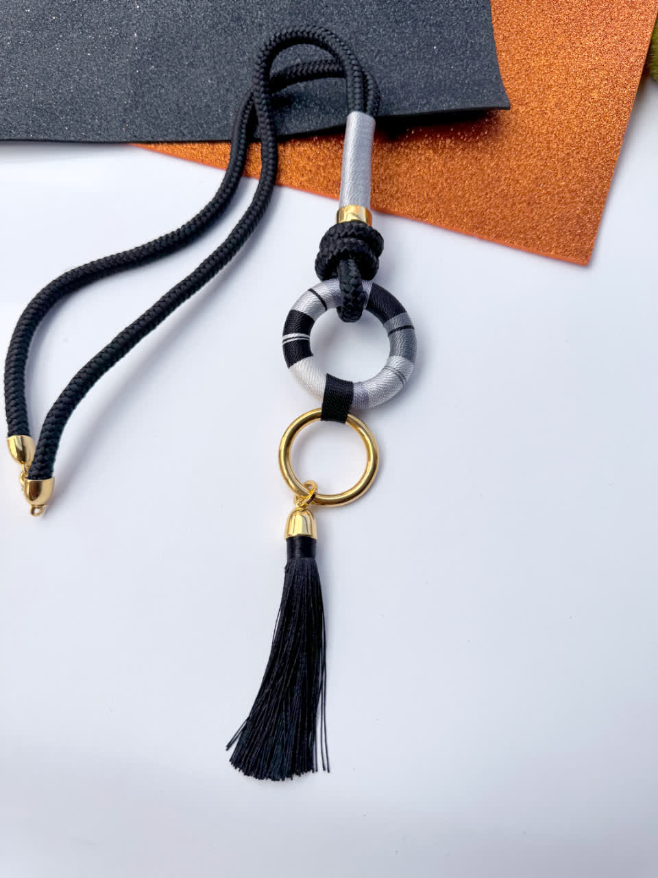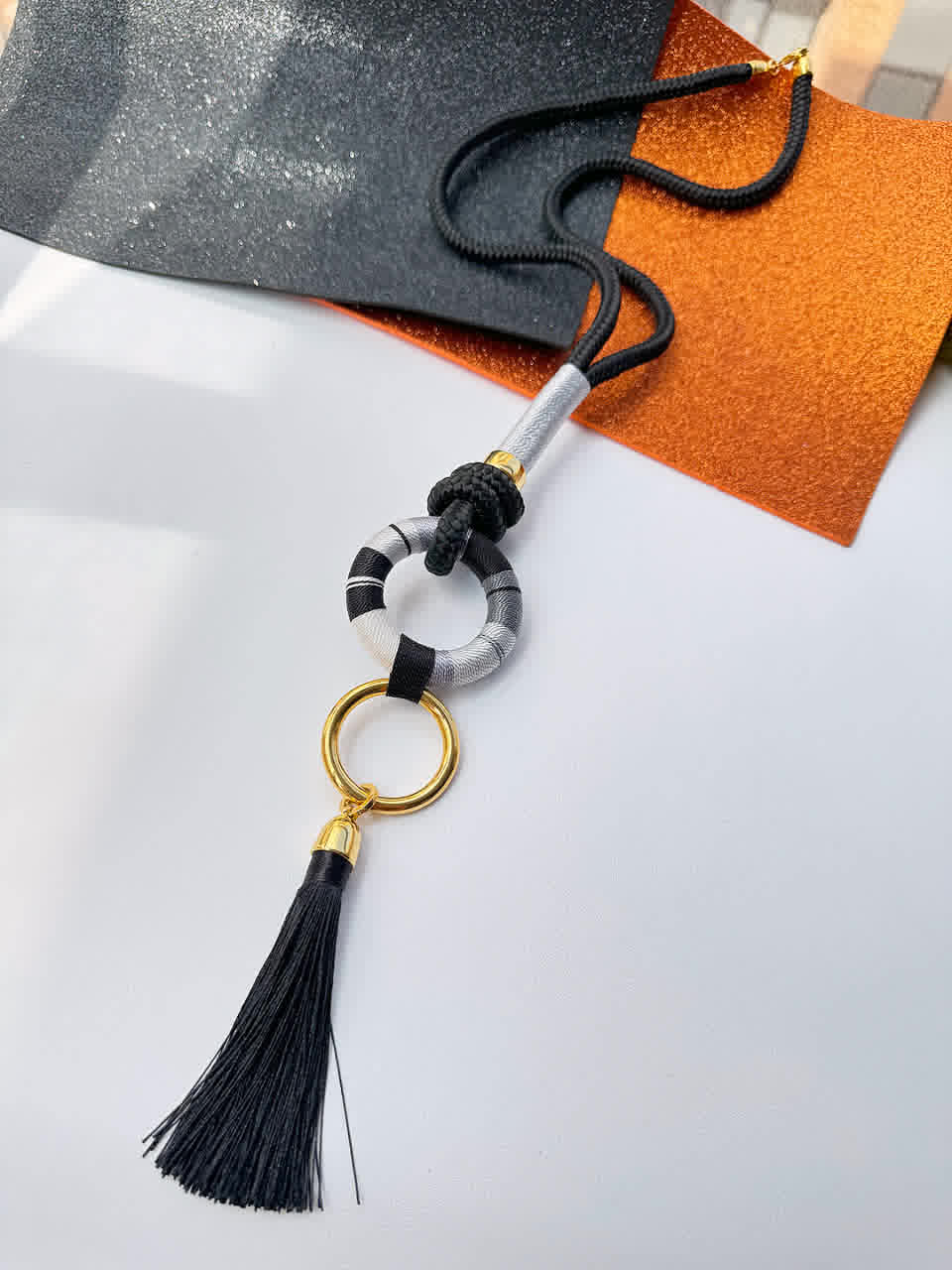 Elegancia de lo hecho a mano, Collar artesanal en hilo seda, elaborada con herrajes en bronce de alta calidad y un doble baño de oro de 24k. Cada pieza es una creación única, hecha en Colombia, pensada para mujeres que valoran la exclusividad, el diseño artesanal y la moda consciente.